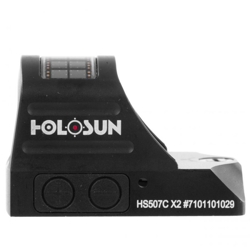 Holosun Micro Red Dot HS507C X2 to kompaktowy celownik kolimatorowy do broni krótkiej, wyposażony w układ zasilania słonecznego Solar Failsafe, system oszczędzania baterii Shake Awake oraz możliwość zmiany znaku celowniczego.