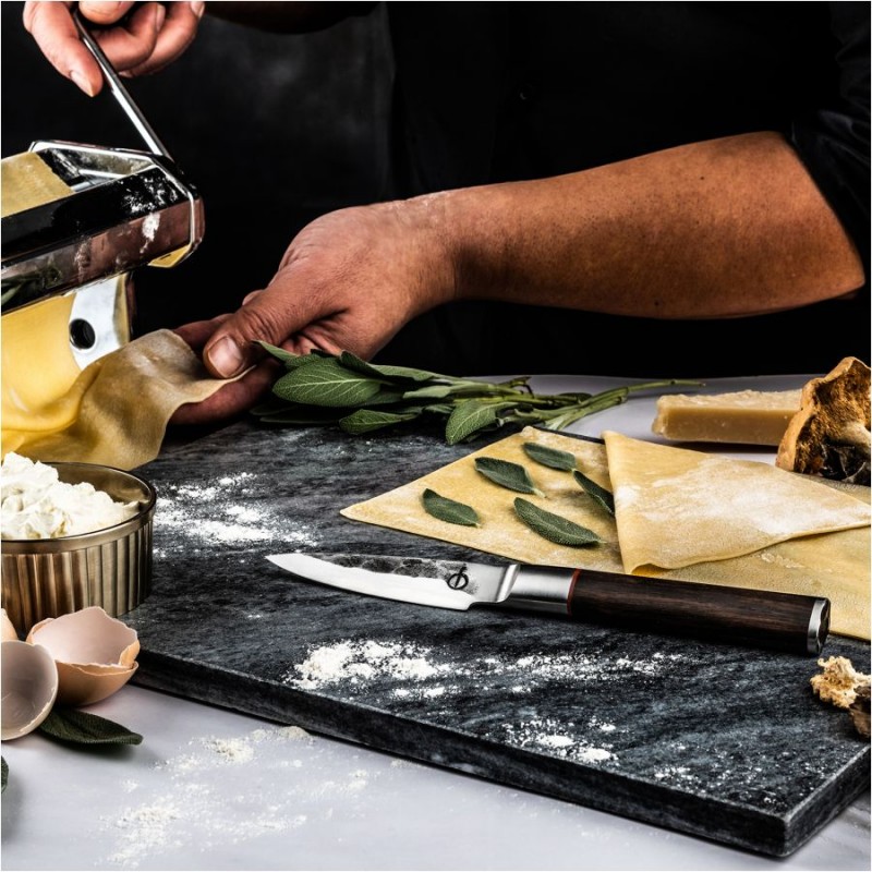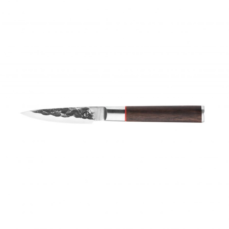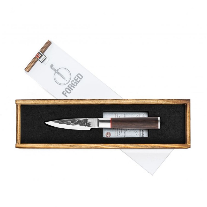 Nóż do obierania Forged to przeznaczona do precyzyjnej pracy konstrukcja typu pairing, który dzięki niewielkim gabarytom umożliwia wyjątkowo łatwą manipulację. Nóż do obierania marki Forged łączy w sobie wszelkie zalety tej formy z zastosowaniem japońskiej stali nierdzewnej zapewniającej dobre trzymanie ostrości połączone z niezwykle łatwym ostrzeniem i świetną odpornością na korozję. Konstrukcję dopełnia przyjemne wzornictwo łączące surową powierzchnię głowni z elegancką, drewnianą rękojeścią.