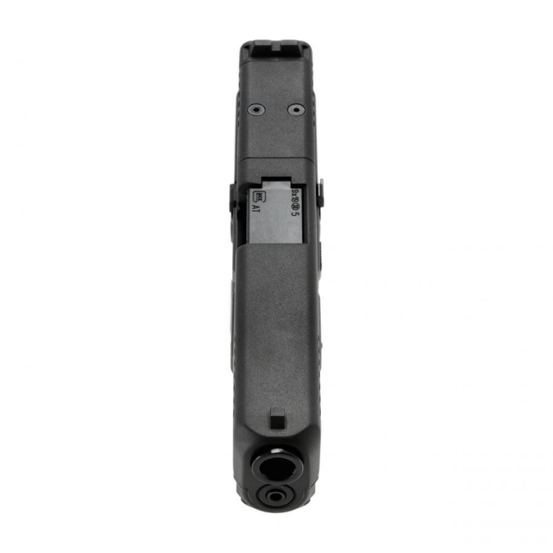 Na zamku i szkielecie naniesiono licencjonowane oznaczenia firmy Glock oraz numer seryjny pistoletu. Prosty, klasyczny chwyt bez profilowania na palce, zapewnia lepszą kontrolę nad bronią każdemu strzelcowi niezależnie od wielkości dłoni.
