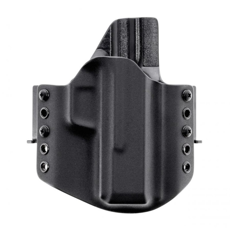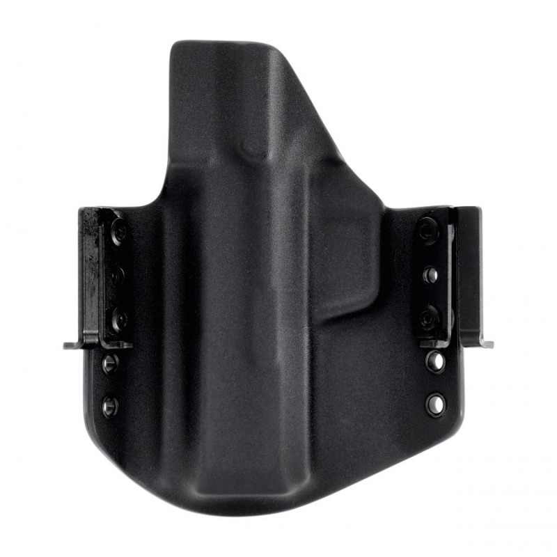 Omawiany model charakteryzuje się konstrukcją typu OWB (Over Waist Band) przeznaczoną do noszenia na zewnętrznej stronie pasa. Kabura tego typu gwarantuje wysoki komfort przenoszenia oraz możliwość szybkiego dobycia. W przypadku chęci wykorzystania w roli kabury EDC konstrukcja skutecznie dociska broń do naszego ciała, pozwalając na dyskretne przenoszenie jej pod obszerną koszulą, marynarką lub kurtką. Kabura OWB doskonale sprawdzi się również w taktycznych lub sportowych konfiguracjach pasa strzeleckiego - skorzystamy z niej zatem zarówno na strzelnicy, jak i w codziennym użytkowaniu. Zwielokrotnione porty montażu szlufek pozwolą nam na ustalenie pionowej pozycji kabury.