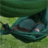 Zestaw zawiera liny oraz małe karabińczyki o wytrzymałości 6 kN, co ułatwia montaż. Oprócz odpoczynku, hamak może również służyć jako praktyczne miejsce do przechowywania ekwipunku, takiego jak plecak czy buty, które można bezpiecznie przechować podwieszone pod nim.