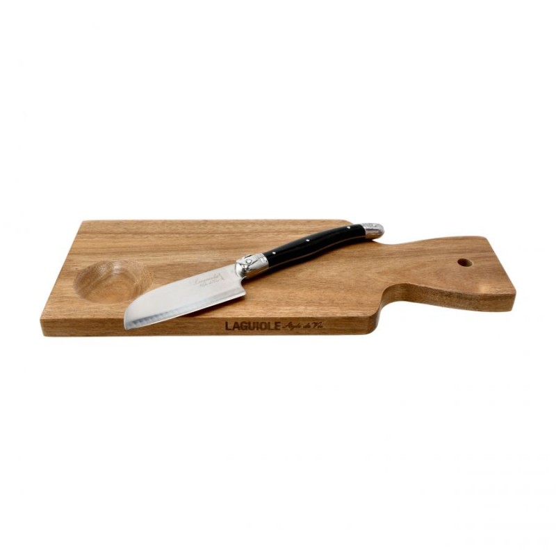 Nóż do sera Laguiole Santoku Laguiole Premium Line nawiązuje do japońskiego stylu i wzornictwa. Wraz z akacjową deską tworzą zestaw, który pozwoli nam na eleganckie krojenie i serwowanie różnego typu serów.
