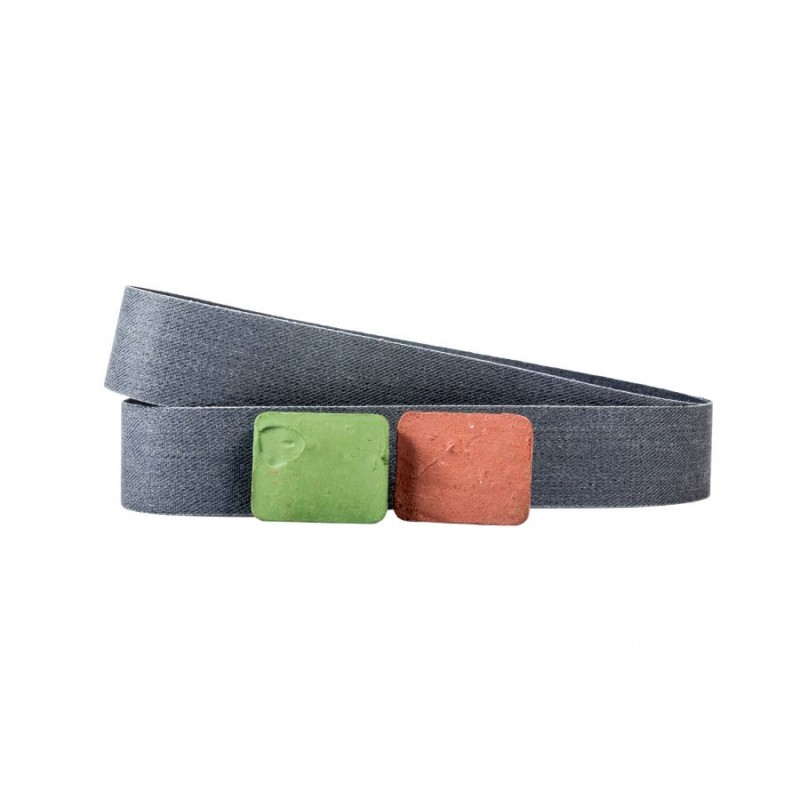 Pasy wykonano z nieścieralnej tkaniny Norton, która zapewnia bardziej stabilne i spójne podłoże do nakładania pasy polerskiej niż stosowane dotąd pasy skórzane.
