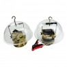 Urządzenie może działać w trybie manualnym (ręczne ustawienie godzinowego zakresu pracy) lub automatycznym z wykorzystaniem czujnika światła. Do zasilania możemy wykorzystać gniazdo sieciowe lub dowolny akumulator 12 V, co pozwala na umieszczenie odstraszacza w dowolnym miejscu na polu np. na drzewie, tyczce lub budynku. Odstraszacz ma metalową ramkę montażową z otworami na hak lub śruby.