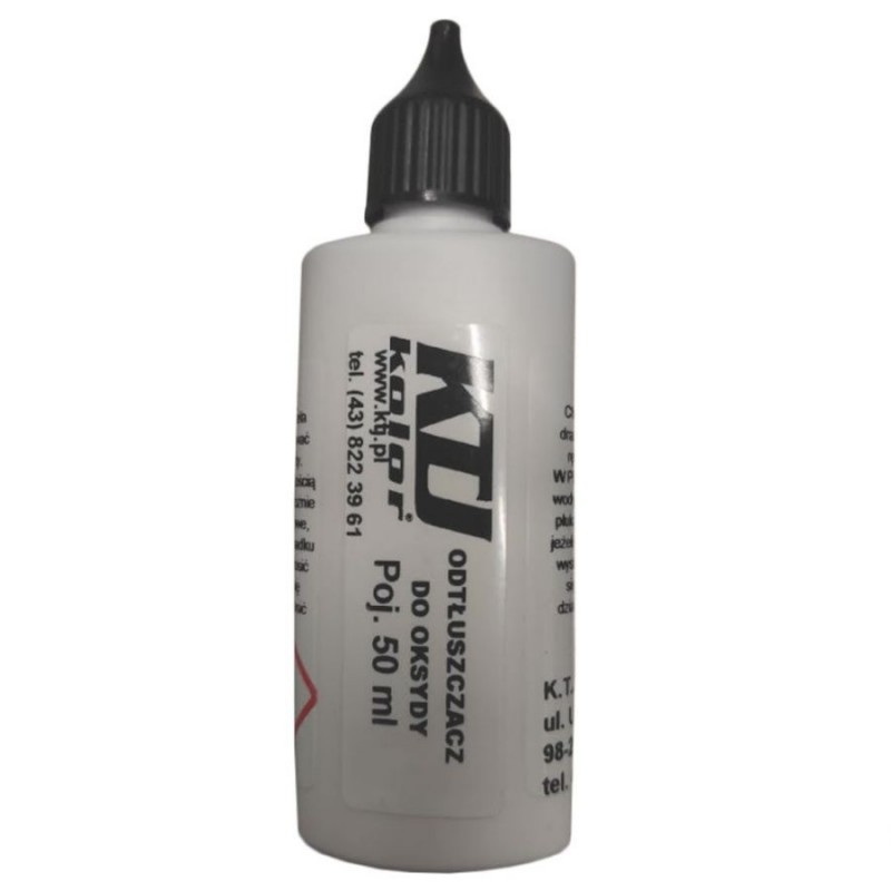 Odtłuszczacz do oksydy, opakowanie o pojemności 50 ml. Jego użycie jest zalecane przed przystąpieniem do procesu oksydowania.
