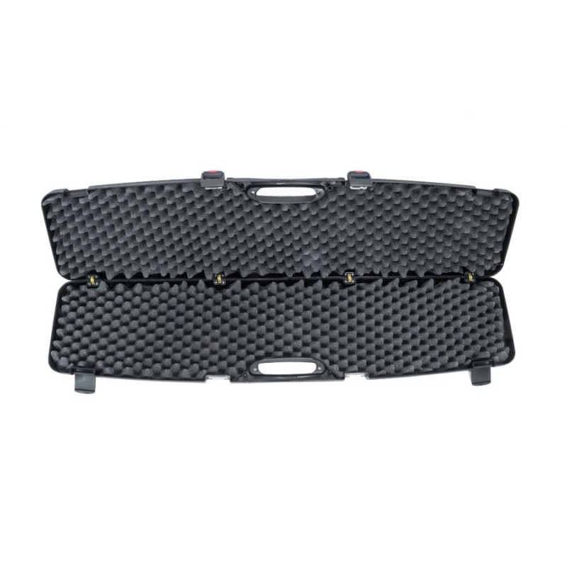 We wnętrzu prezentowanego kufra na broń długą znajduje się bardzo gruba wyściółka z gąbki. Jej cechą charakterystyczną jest struktura przypominająca szczęki rekina, która ma za zadanie ochronę broni przed jej niekontrolowanym przesuwaniem się w trakcie przenoszenia. To ogromna zaleta, gdyż zabezpiecza broń w najlepszy możliwy sposób. Gąbczasta wyściółka gwarantuje także skuteczne tłumienie drgań i uderzeń, tym samym zapewnia ochronę broni przed zarysowaniami lub stłuczeniami i obiciami.