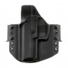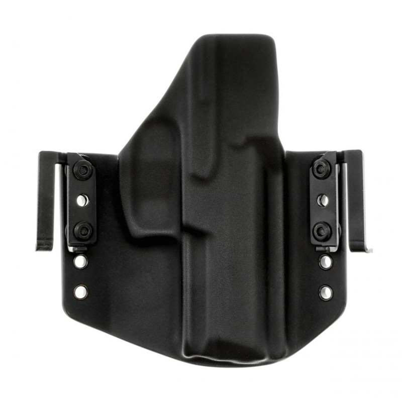Omawiany model charakteryzuje się konstrukcją typu OWB (Over Waist Band) przeznaczoną do noszenia na zewnętrznej stronie pasa. Kabura tego typu gwarantuje wysoki komfort przenoszenia oraz możliwość szybkiego dobycia. W przypadku chęci wykorzystania w roli kabury EDC konstrukcja skutecznie dociska broń do naszego ciała, pozwalając na dyskretne przenoszenie jej pod obszerną koszulą, marynarką lub kurtką. Kabura OWB doskonale sprawdzi się również w taktycznych lub sportowych konfiguracjach pasa strzeleckiego - skorzystamy z niej zatem zarówno na strzelnicy, jak i w codziennym użytkowaniu. Zwielokrotnione porty montażu szlufek pozwolą nam na ustalenie pionowej pozycji kabury.