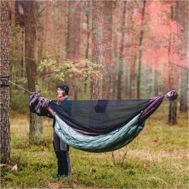 Lesovik Draka to profesjonalny hamak wyprawowy, ze zintegrowana moskitierą, systemem zawieszenia SMUK, organizerem oraz kompletem pokrowców transportowych.