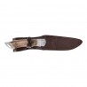 W zestawie z nożem użytkownik otrzymuje skórzaną pochewkę z możliwością mocowania do pasa.