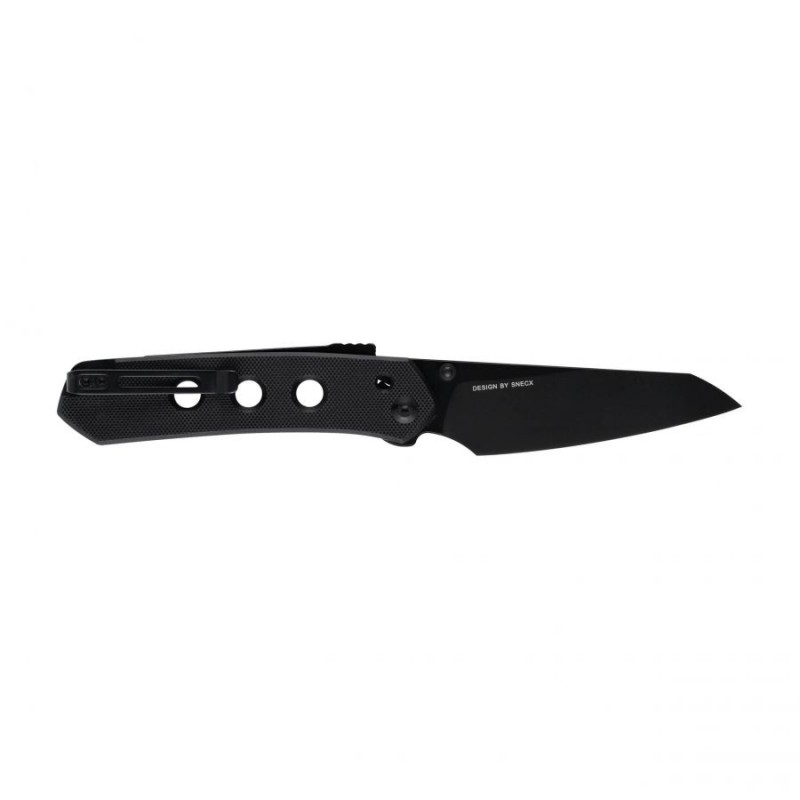 Nóż ma dwustronny klips (prawa/lewa), który umożliwia komfortowe przenoszenie noża w pozycji tip-up, zahaczonego o krawędź kieszeni spodni.