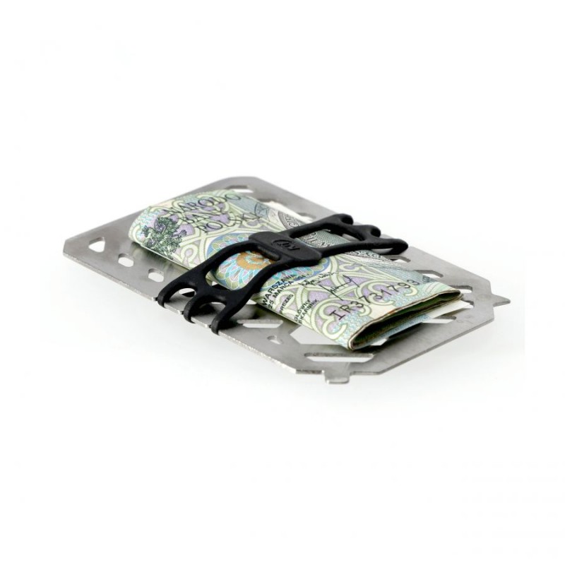 Multitool Nite Ize Financial Tool Wallet został wyposażony w innowacyjny, elastyczny uchwyt, dzięki któremu możemy wpiąć gotówkę w postaci banknotów, kartę płatniczą, dowód osobisty, prawo jazdy lub kartę dostępu do pracy.
