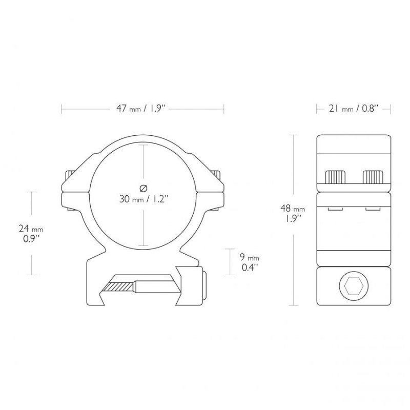 Pierścienie montażowe mocuje się czterema śrubami i dokręca przy użyciu dołączonego klucza. Wytrzymałość na odrzut nawet silnych wiatrówek gwarantują śruby mocujące. Wewnętrzne ściany pierścieni okryto taśmą ochronną, która zapobiega porysowaniu tubusa lunety.