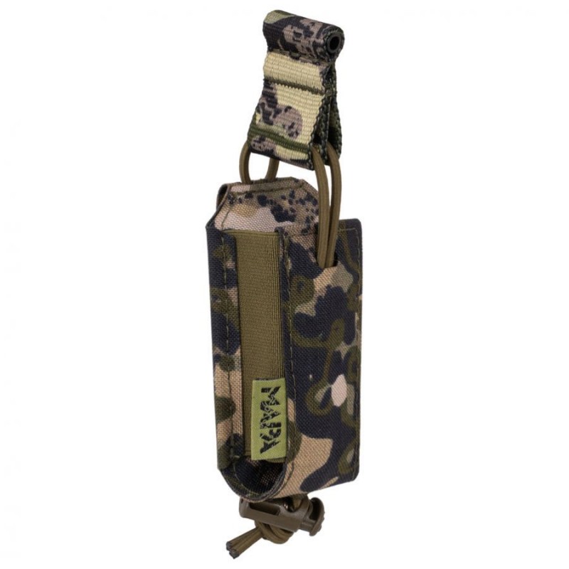 Ładownicę uszyto z cordury w polskim kamuflażu MAPA B, stworzonym z myślą o żołnierzach Wojska Obrony Terytorialnej. Dzięki niemu możesz idealnie wtopić się w tło podczas aktywności w lesie. Kamuflaż ten zapewnia rozmycie sylwetki za pomocą makro i mikro wzorów, które dodatkowo upodabniają wzór do otaczającej Cię roślinności. Doskonale odwzorowuje kolory lasów środkowoeuropejskich w okresie od późnej wiosny do wczesnej jesieni.