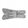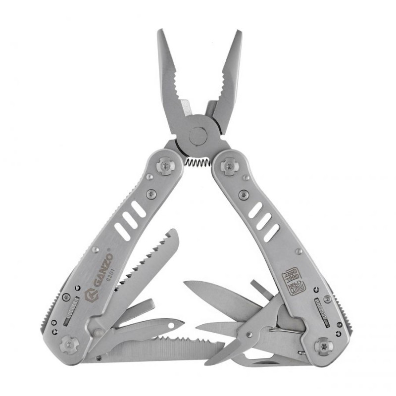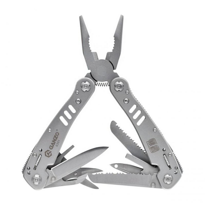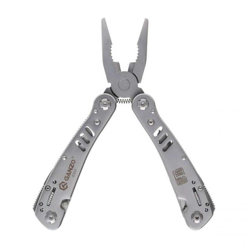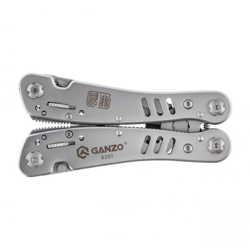Multitool Ganzo G301 to dużych rozmiarów, wykonany całkowice ze stali zestaw przydatnych narzędzi, które dzięki dołączonej funkcjonalnej pochewce możemy mieć zawsze przy sobie. Wygodna rękojeść posiada specjalne nacięcia które zwiększają pewność chwytu podczas operowania multitoolem.