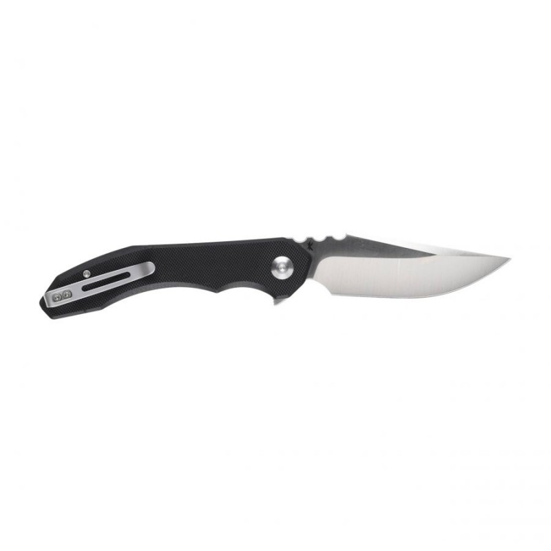 Nóż ma w satynowaną klingę typu Drop Point. Fragment grzbietu klingi pokrywa tzw. upper jimping, czyli karbowanie. Ułatwia ono manipulowanie folderem, zwłaszcza podczas prac wymagających większej precyzji.