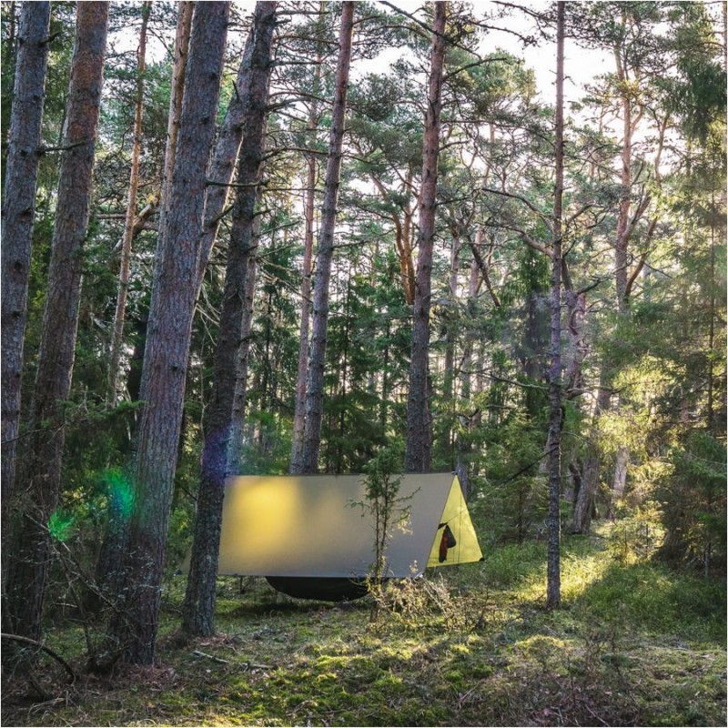 Lesovik GROZA to uniwersalny tarp turystyczny, który doskonale sprawdzi się w roli zadaszenia hamaka oraz daszku nad posłaniem na ziemi.