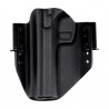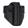 Omawiany model charakteryzuje się konstrukcją typu OWB (Over Waist Band) przeznaczoną do noszenia na zewnętrznej stronie pasa. Kabura tego typu gwarantuje wysoki komfort przenoszenia oraz możliwość szybkiego dobycia. W przypadku chęci wykorzystania w roli kabury EDC konstrukcja skutecznie dociska broń do naszego ciała, pozwalając na dyskretne przenoszenie jej pod obszerną koszulą, marynarką lub kurtką. Kabura OWB doskonale sprawdzi się również w taktycznych lub sportowych konfiguracjach pasa strzeleckiego - skorzystamy z niej zatem zarówno na strzelnicy, jak i w codziennym użytkowaniu. Zwielokrotnione porty montażu szlufek pozwolą nam na ustalenie pionowej pozycji kabury.