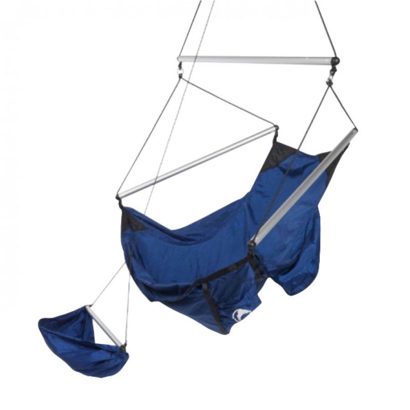 Fotel został wykonany ręcznie przez zespół wykwalifikowanych szwaczy. Do produkcji wykorzystano ultralekki nylon spadochronowy, tkaninę o dużej wytrzymałości mechanicznej, odporną na wilgoć, zabrudzenie oraz utratę koloru. Nylonowe włókna są elastyczne, miłe dla skóry, chronią przed wiatrem i insektami, dzięki czemu hamak zapewnia wysoki komfort odpoczynku. Fotel wytrzymujący obciążenie do 120 kg. Fotel ma usztywniane, miękko wyprawione siedzisko i oparcia, oraz wygodny podnóżek, który zapewnia komfortowy odpoczynek w pozycji półsiedzącej. W komplecie linka montażowa o długości 480 cm.