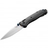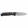 Benchmade 535-3 Bugout ma okładziny z lekkiego i wytrzymałego włókna węglowego, które poza efektownym wyglądem, zapewnia minimalny ciężar noża — zaledwie 57 g. Delikatnie profilowane okładziny o antypoślizgowym teksturowaniu, zapewniają pewny i wygodny chwyt noża. Kompaktowy klips z opcją przełożenia (lewa/prawa), umożliwia przenoszenie noża w kieszeni w bardzo dyskretny, nie rzucając się w oczy sposób. W rękojeści znajduje się również otwór umożliwiający mocowanie linki lub oplotu z paracordu.
