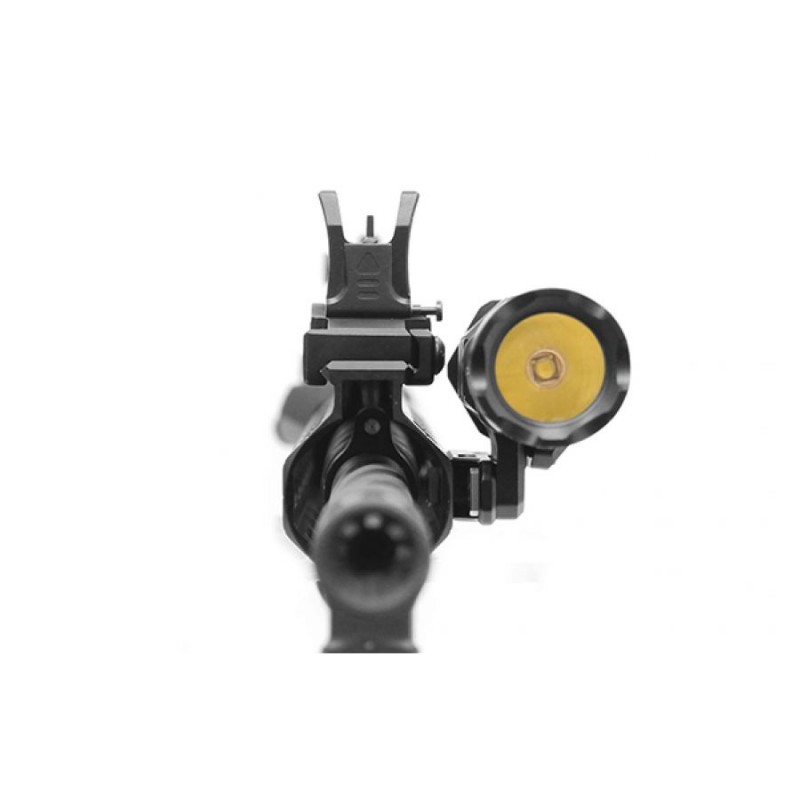 Montaż wykonano z lekkiego i wytrzymałego aluminium o czarnym matowym anodowaniu. Latarka mocowana jest pod kątem 45°, dzięki czemu nie odstaje od broni i zachowuje zwarty profil.
