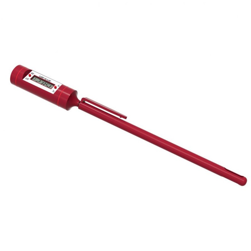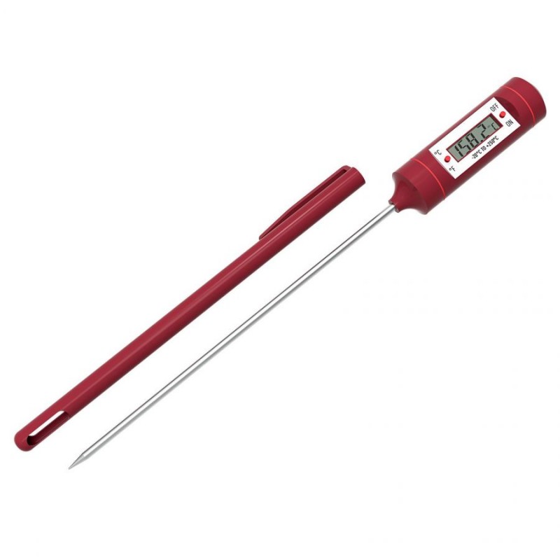 Precyzyjny termometr do żywności Browin wyposażony w sondę szpilkową oraz czytelny wyświetlacz LCD to narzędzie, o które warto wzbogacić swój kuchenny arsenał. Za pomocą elektronicznego termometru Browin w precyzyjny i wygodny sposób dokonasz pomiaru temperatury mięs, ciast, potraw oraz napojów. Termometr ma szeroki zakres pomiarowy od -20°C do +250°C z możliwością wyrażania pomiaru w jednostkach Celsjusza lub Fahrenheita, (przełączenie skali jednym przyciskiem).
