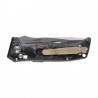 Za bezpieczeństwo pracy odpowiada flagowy mechanizm Benchmade, dwustronna blokada Axis-lock, ceniona za ogromną wytrzymałość mechaniczną, odporność na zabrudzenie oraz wygodę obsługi dla prawo i leworęcznych użytkowników. Zwolnienie automatycznie załączającego się suwaka blokady powoduje otwarcie głowni. Aby dodatkowo zabezpieczyć nóż przed otwarciem lub złożeniem, możemy wykorzystać dodatkowy, grzbietowy suwak mocujący.