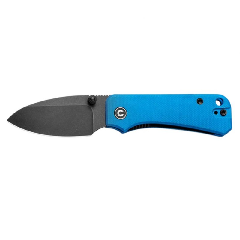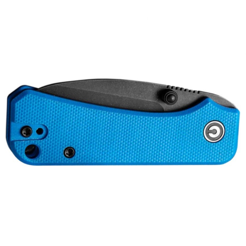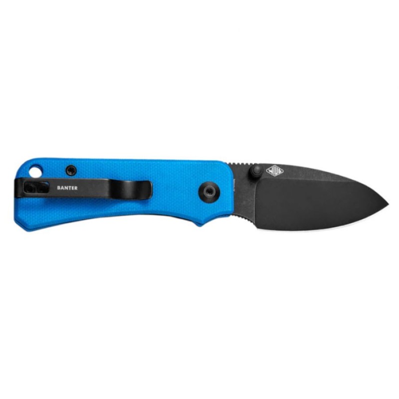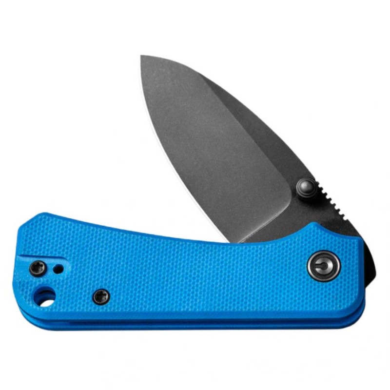 Rękojeść Civivi Baby Banter wykonano z zabarwionego na niebieski kolor tworzywa G10. Jest to kompozyt powstający z połączenia włókna szklanego i syntetycznej żywicy. Cechuje się niewielką masą i wysoką odpornością na uszkodzenia mechaniczne. Chropowata faktura okładzin sprawia, że nóż pewnie leży nawet w spracowanej i spoconej dłoni. Otwarta konstrukcja (ang. open backed) korpusu ułatwia czyszczenie i oliwienie noża. W dolnej części rękojeści można znaleźć otwór na linkę lub smycz, w górnej małe logo marki.