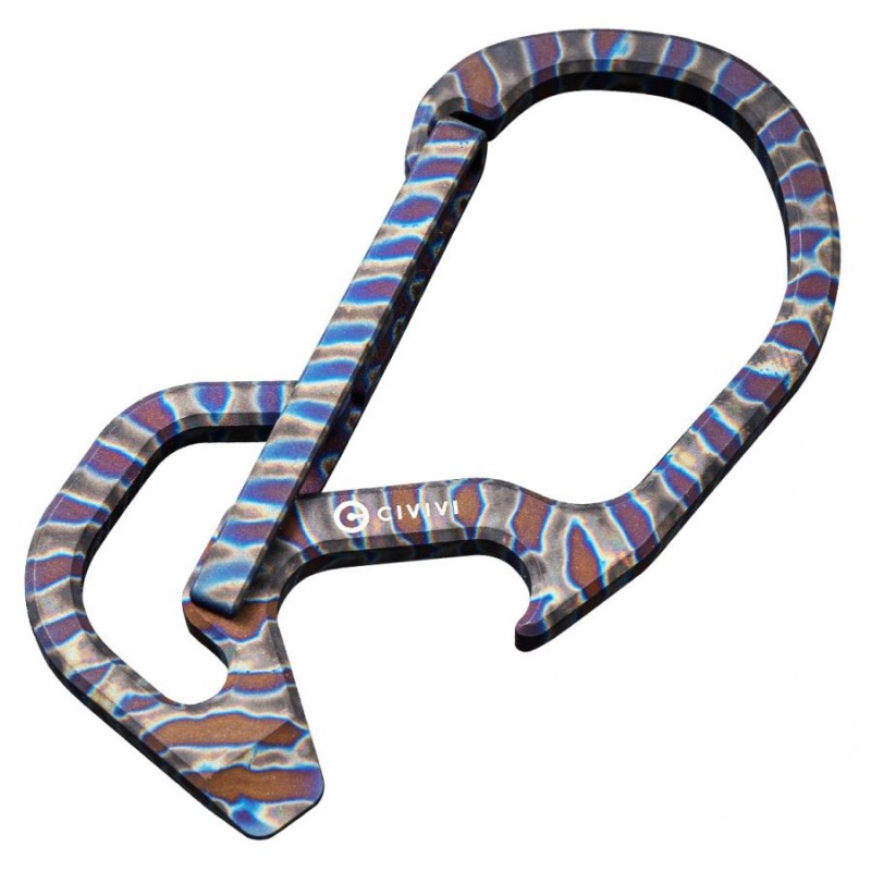 Civivi Click Carabiner Keychain Multi-Tool to dwuprzegrodowy i funkcjonalny karabińczyk z litego tytanu. Może być wykorzystany do podwieszenia pęku kluczy, można go również przypiąć do szlufki spodni lub taśm systemu MOLLE. Narzędzie wyposażono ponadto w otwieracz do butelek i płaski śrubokręt z funkcją łomu (screwdriver/prybar). Przydatność ostatniego rozwiązania zrozumie każdy, kto ułamał kiedyś sztych noża próbując podważyć coś głownią.
