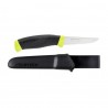 Elastyczna klinga wykonana z nierdzewnej stali Sandvik została zahartowana do wartości 57-58 HRC. Płaski szlif oraz odpowiednia długość ostrza umożliwia płynne prowadzenie cięcia. Anatomiczne wyprofilowanie rękojeści oraz gumowany chwyt zapewniają bezpieczne operowanie nożem w każdych warunkach. Do noża dołączona jest funkcjonalna pochewka wykonana z tworzywa, którą łatwo utrzymać w czystości.