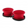 Miski wykonano z silikonu spożywczego, który nie zawiera szkodliwych dla zdrowia substancji, nie przenosi zapachów i jest łatwy do mycia (można myć w zmywarce). W komplecie znajdują się dwie miski o pojemności 750 ml każda.