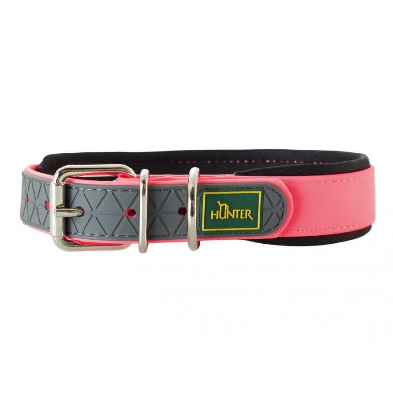 Wyrazista kolorystyka powoduje, że zwierzę jest widoczne z dużej odległości, co jest bardzo istotne z punktu widzenia bezpieczeństwa pracy w terenie. Obroża ma stalowy pierścień do wpinania smyczy oraz dużą i wygodną do zapinania klamrę. Do obroży zalecamy smycz z serii Convenience.