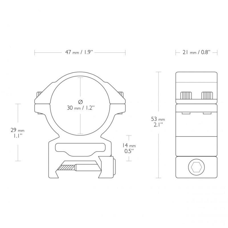 Pierścienie montażowe mocuje się czterema śrubami i dokręca przy użyciu dołączonego klucza. Wytrzymałość na odrzut nawet silnych wiatrówek gwarantują śruby mocujące. Wewnętrzne ściany pierścieni okryto taśmą ochronną, która zapobiega porysowaniu tubusa lunety.