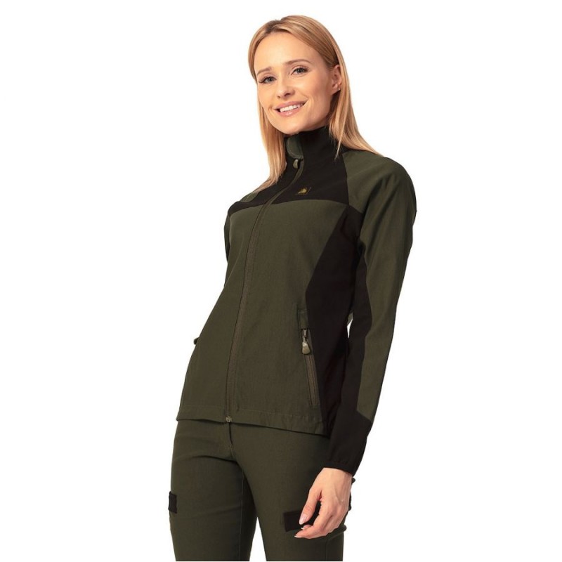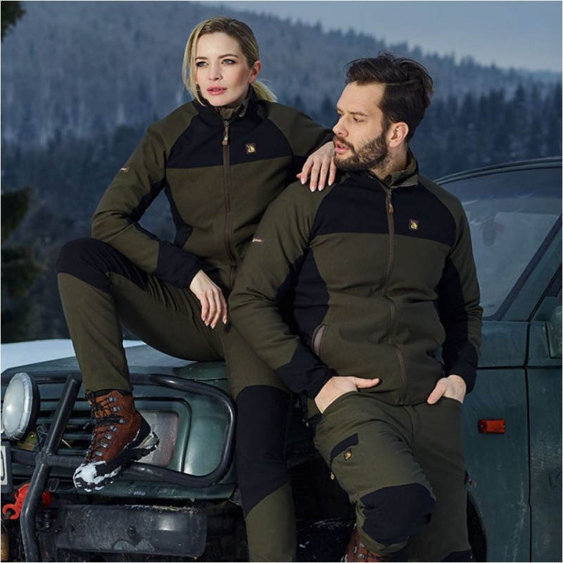 Wersja Pro modelu Cramp wykonana została z dwóch kolorów tkanin czarnym i zielonym, co podkreśla dodatkowo dynamiczną linię kroju. Kurtka ze stójką zapinana na zamek błyskawiczny, wyposażona w 2 kieszenie zewnętrzne boczne zapinane na zamki błyskawiczne oraz 2 wewnętrzne. Cramp Pro to idealny wybór na co dzień oraz polowań w okresie wiosenno letnim.