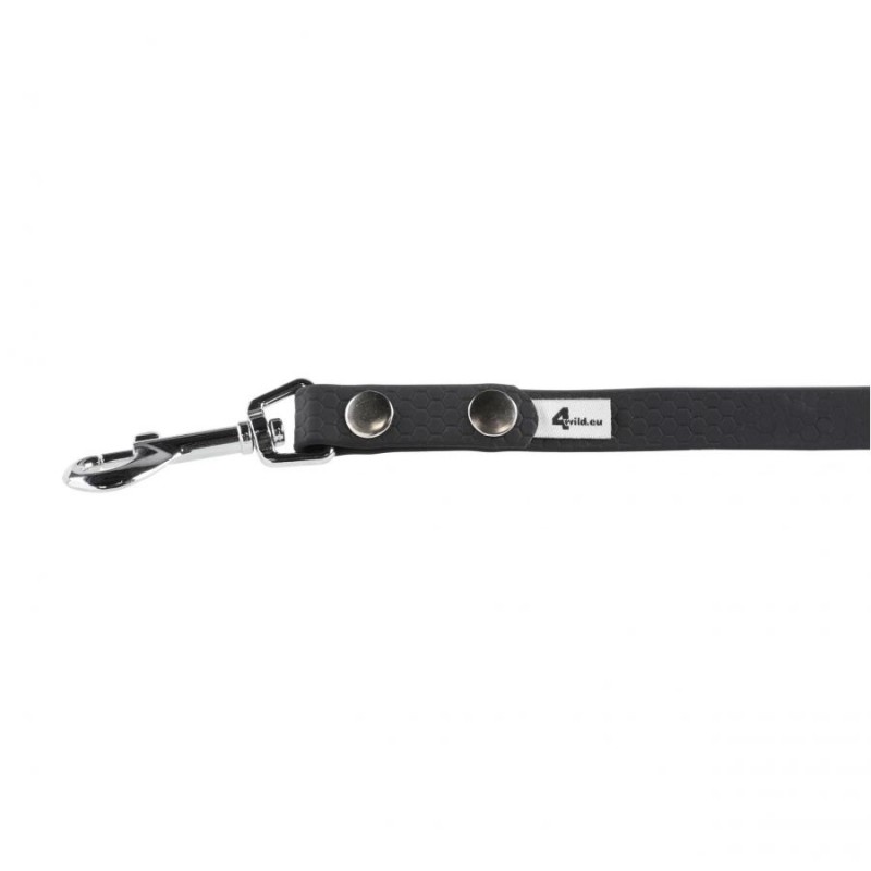 Smycz dla psa BioThane wodoodporna od firmy specjalizującej się w produkcji akcesoriów dla zwierząt 4wild. Smycz została wykonana z taśmy BioThane w czarnym kolorze o szerokości 16 mm i długości 10 m.