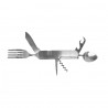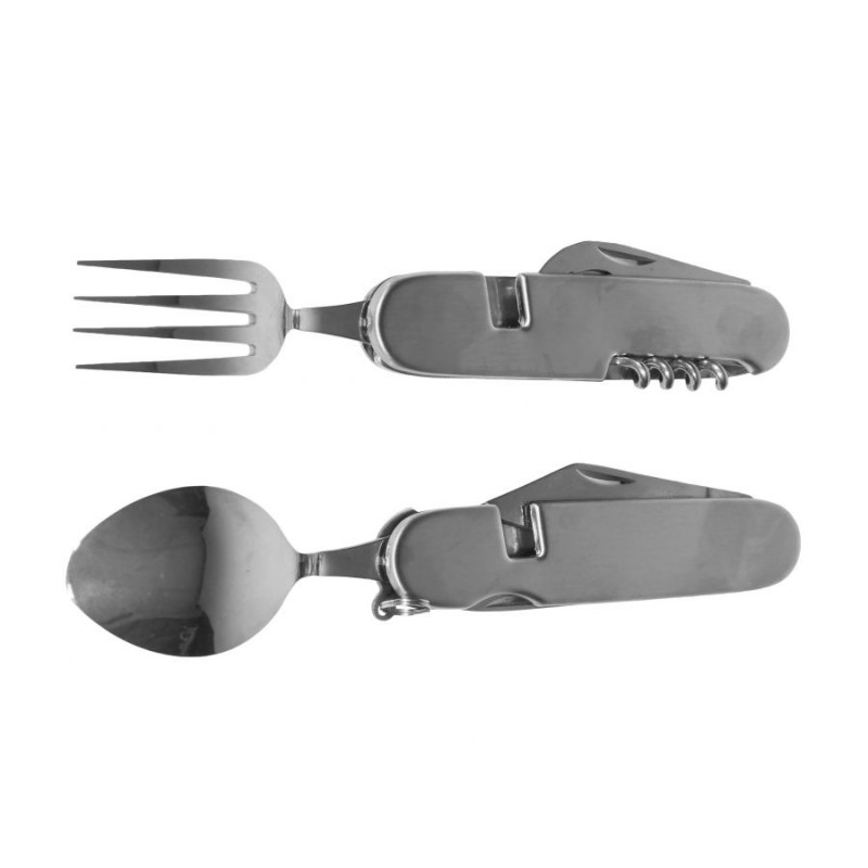 Wysokiej jakości niezbędnik turystyczny hiszpańskiej marki JOKER znanej na całym świecie ze swoich doskonałych wyrobów. Wykonany jest on w całości z mocnej stali nierdzewnej. Niezbędny na każdej wycieczce. Nóż z łyżką oraz widelec znajdują się na oddzielnych modułach (łączonych za pomocą dwóch mosiężnych rygli) i mogą być wykorzystywane osobno. W komplecie pokrowiec z kodury z możliwością przypięcia do pasa. Całość zapakowana jest w ładne tekturowe pudełko co sprawia że niezbędnik idealnie nadaje się na prezent.