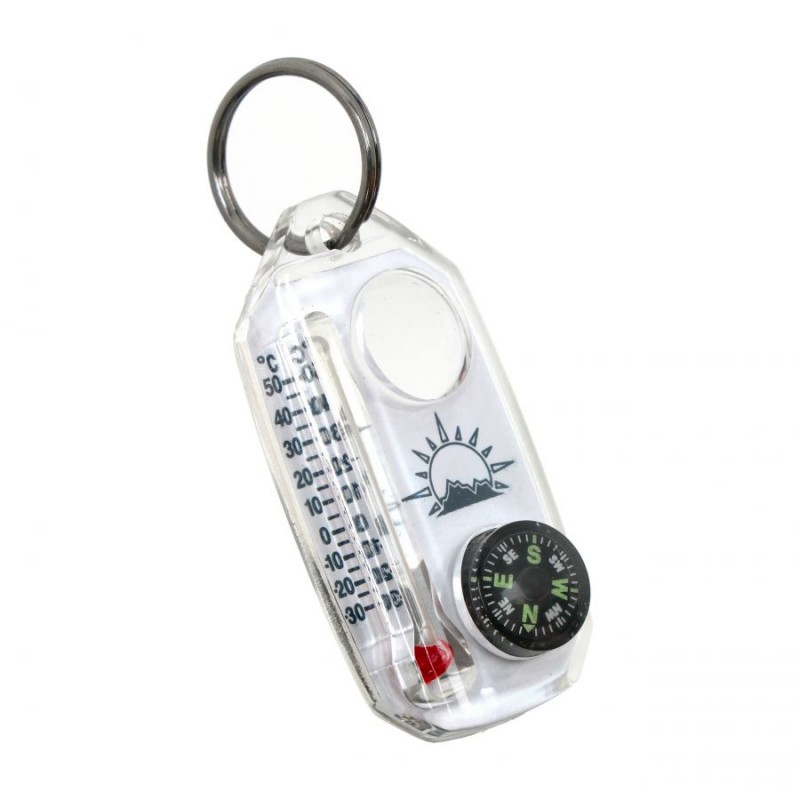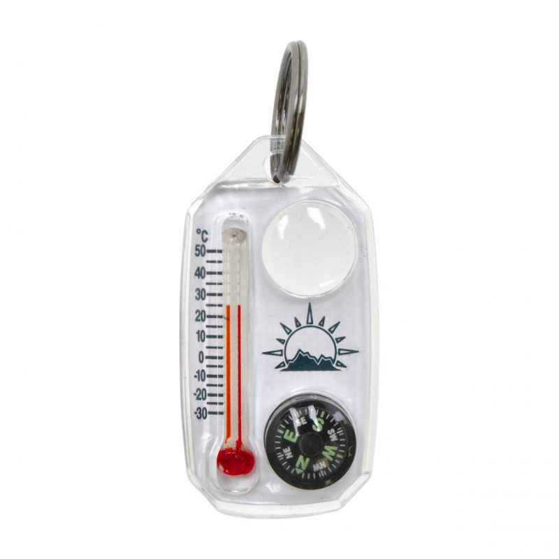 Sun Co. TripleGage to połączenie miniaturowego termometru, lupy i kompasu zaprojektowany specjalnie dla miłośników outdooru. Wykonany z fosforyzującego materiału, świeci w ciemności do 6 godzin. Pozwala czytać mapę, nawigować oraz szybko określić temperaturę i ubrać się odpowiednio do panujących warunków.
