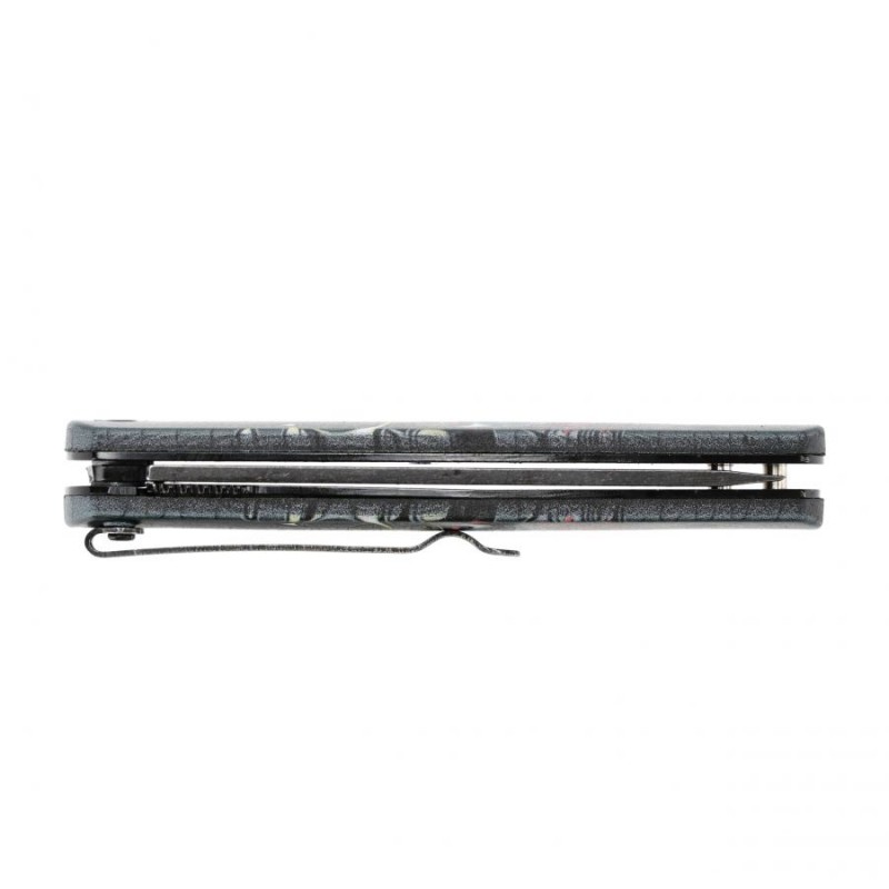 Przed przypadkowym złożeniem głowni skutecznie chroni klasyczna blokada liner-lock, ceniona za wytrzymałość oraz łatwość obsługi. Mechanizm składa się ze sprężynującej listwy, która blokuje klingę, opierając się o jej tylną część. Nóż Ganzo G626-BS ma proste okładziny z tworzywa sztucznego, na których naniesiono ozdobną grafikę z motywem japońskiego samuraja. Dyskretne przenoszenie noża w kieszeni ułatwia stalowy klips deep carry (tip down, bez możliwości przełożenia).