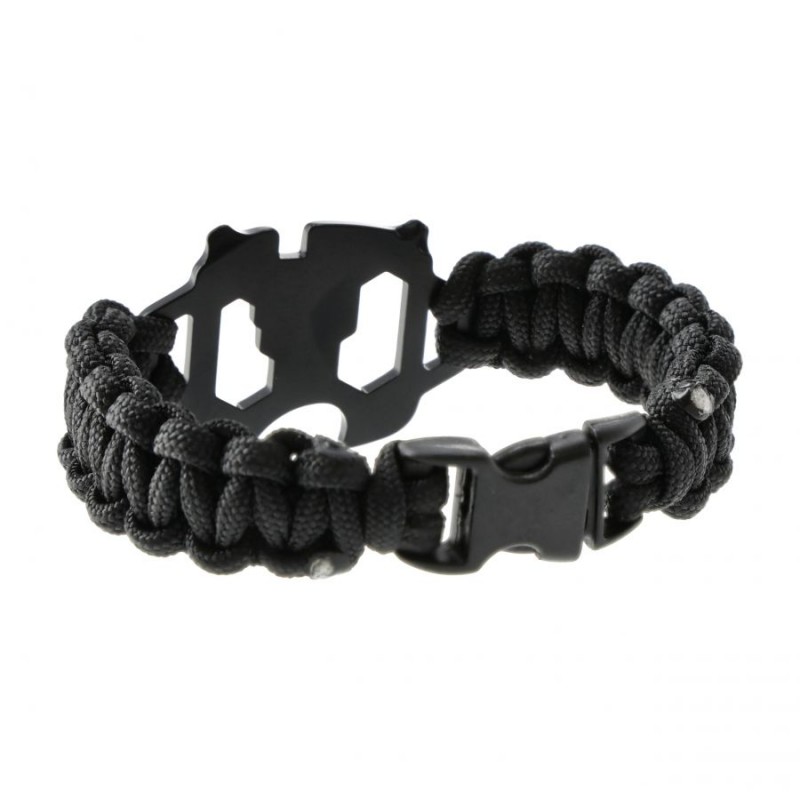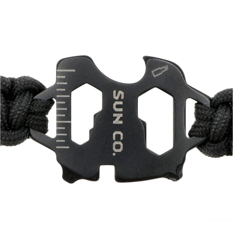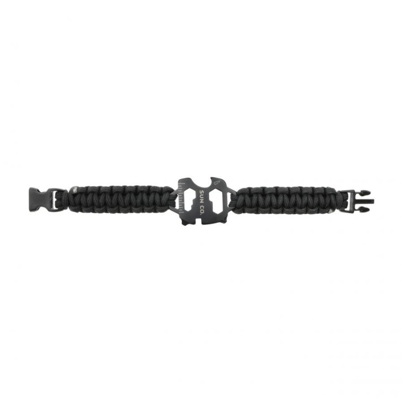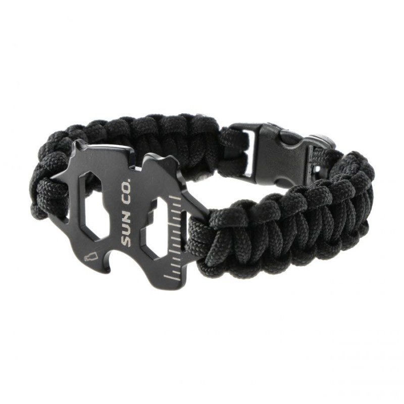 Wytrzymałą bransoletkę ParaDriver firmy Sun Company wykonano z ponad dwumetrowej plecionej linki paracord. Bransoletka to w zasadzie multitool, zestaw praktycznych narzędzi, składający się z: śrubokrętów Phillipsa i płaskiego, klucza imbusowego w pięciu rozmiarach, klucza do szprych, linijki w calach oraz otwieracza do butelek.