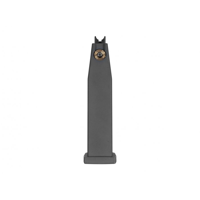 Korpus magazynka wykonano z metalu, stopka jest polimerowa. Wewnątrz magazynka znajduje się przedział na kapsułę CO2.