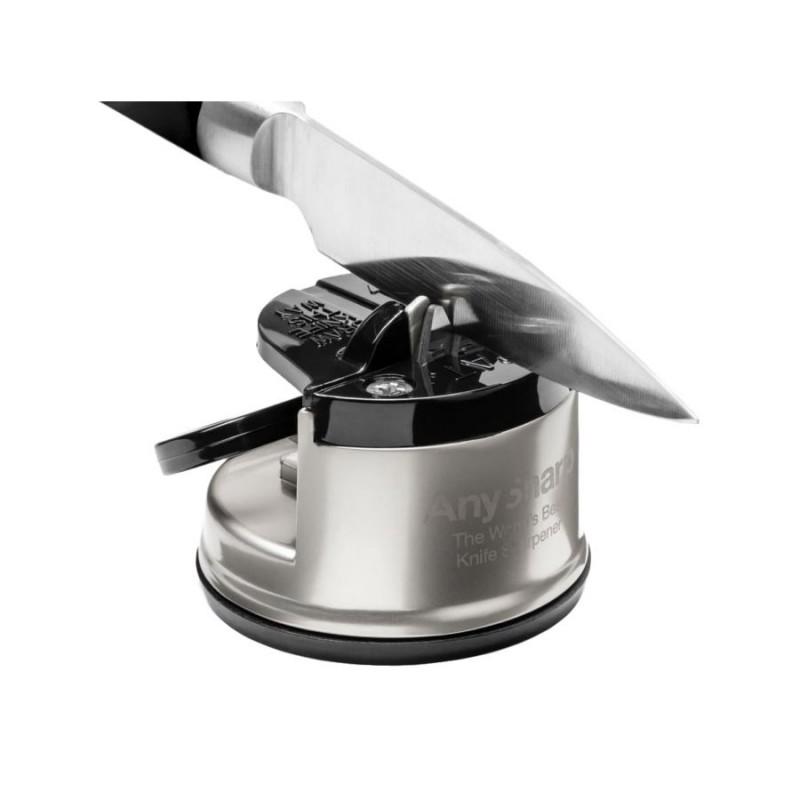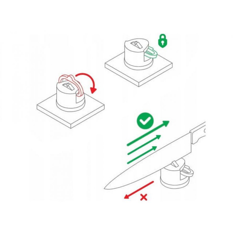 Wygodę użytkowania ostrzałki AnySharp zapewnia podstawa z mocną przyssawką próżniową, która pozwala na stabilne przytwierdzenie osełki do gładkich powierzchni szklanych, metalowych, ceramicznych i plastikowych.