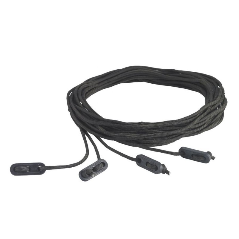 Łatwość i szybkość montażu zapewniają dołączone linki do mocowania hamaka, linki ze stoperami (do moskitiery) oraz 2 karabińczyki. W zestawie znajduję się także prosty pokrowiec do przenoszenia.