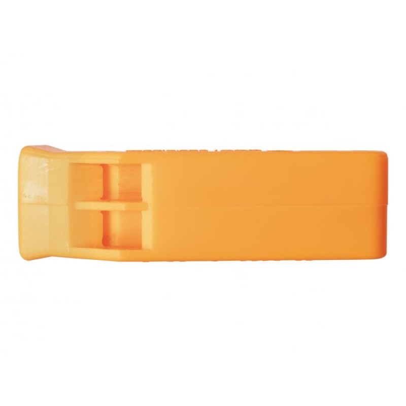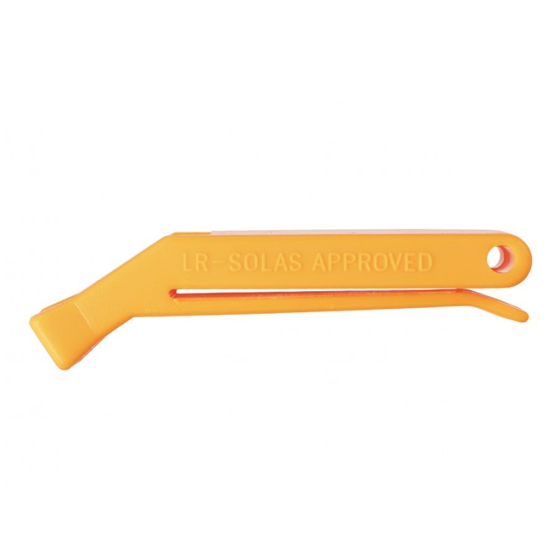 Gwizdek wykonano z tworzywa o wysokiej odporności na uszkodzenia mechaniczne, niekorzystne działanie wody morskiej oraz warunki atmosferyczne. Jaskrawo pomarańczowa kolorystyka zapewnia doskonałą widoczność i ułatwia szybkie odszukanie gwizdka.