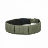 Rękaw zewnętrzny wykonany z wytrzymałego materiału CORDURA 500 charakteryzuje się wysoką odpornością na przetarcia i uszkodzenia mechaniczne, co zapewnia jego długotrwałe użytkowanie w trudnych warunkach terenowych. Pas jest wyposażony w klasycznie naszyte taśmy systemu MOLLE, które umożliwiają elastyczne i stabilne przymocowanie różnorodnych akcesoriów i ładownic. System MOLLE zapewnia kompatybilność z szeroką gamą sprzętu, co pozwala na dostosowanie pasa do indywidualnych potrzeb użytkownika.