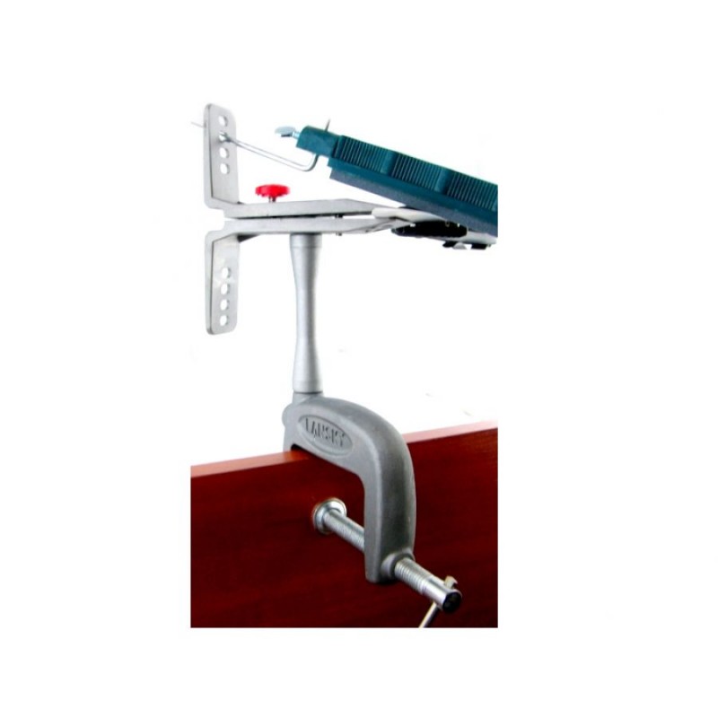 Lansky LM010 to metalowy zacisk, który po zamocowaniu na krawędzi stołu, pełni rolę stabilnej podstawy dla systemów ostrzących Lansky, zwiększając w ten sposób komfort oraz kontrolę nad procesem szlifowania.