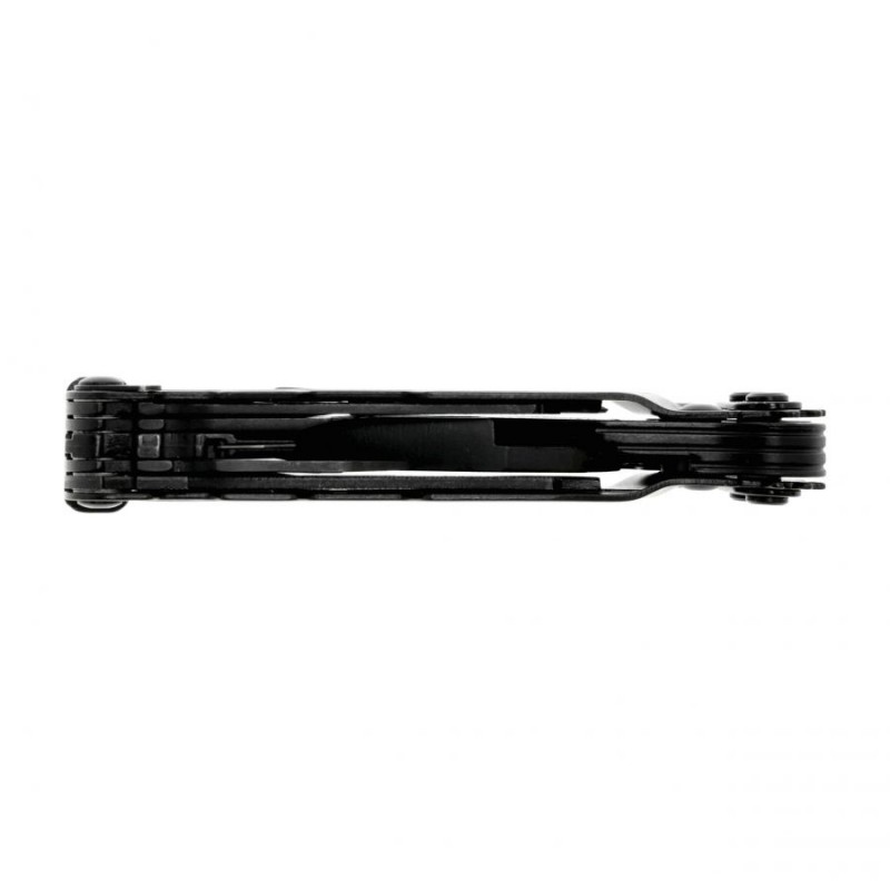 kątomierz, baza do bitów, kombinerki standardowe, linijka cm/in, mini śrubokręt, otwieracz do puszek, otwieracz do butelek, ostrze gładkie, pilnik, przebijak, przecinak do drutu, śrubokręt krzyżakowy,
