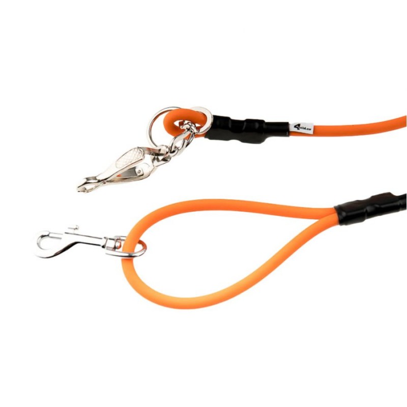Smycz wykonano z mocnej linki polipropylenowej o grubości 8 mm. Syntetyczna linka jest lekka, trudna do zerwania i co istotne w przypadku aktywnego psa — łatwa do czyszczenia. Smycz można czyścić pod bieżącą wodą przy użyciu domowych środków czyszczących i szczoteczki. Smycz przepinana z linki polipropylenowej jest nie tylko odporna na zużycie, ale także działanie promieni UV. Świetnie sprawdza się przy energicznych i ciągnących psach, zapewniając komfort nawet podczas silnych szarpnięć.