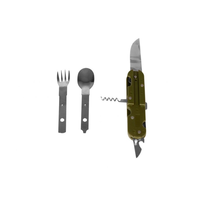 Niezbędnik MFH 3-częściowy to składany zestaw turystyczny wyposażony w 5 narzędzi, przydatnych podczas każdego wypadu na biwak, ognisko oraz wycieczkę.