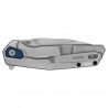 Grubość klingi w najszerszym miejscu wynosi 3 mm, co stanowi kompromis pomiędzy wytrzymałością i funkcjonalnością noża w codziennej pracy. Na podniesionym grzbiecie klingi wycięto poprzeczne frezy, przeznaczone do stabilnego oparcia palców podczas pracy. Nóż ma 2 drobne smaczki, które z pewnością ucieszą wszystkich miłośników noży, mowa o customowym pivocie oraz nylonowym ograniczniku blokady utrzymanym w kolorystyce okładziny.