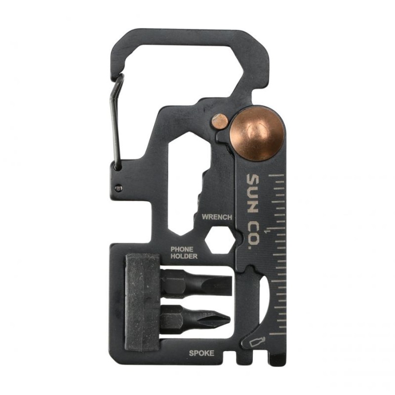 Karabińczyk można łatwo przyczepić do plecaka, linii, torby lub wyposażenia survivalowego. Narzędzia wykonano ze stali nierdzewnej, dzięki czemu są trwałe i odporne na korozję.