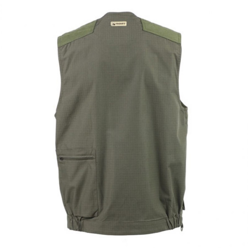 Tagart Duck uszyto z bawełnianej tkaniny ripstop, dzięki czemu kamizelka jest lekka i odporna na uszkodzenia mechaniczne. Zastosowanie siatkowej podszewki zapewnia dobrą cyrkulację powietrza oraz łatwe odprowadzanie potu, co jest szczególnie istotne podczas polowania w okresie letnim. Na ramionach znajdują się pikowane wślizgi z wytrzymałej tkaniny poliestrowej, służące do stabilnego oparcia broni podczas strzału.